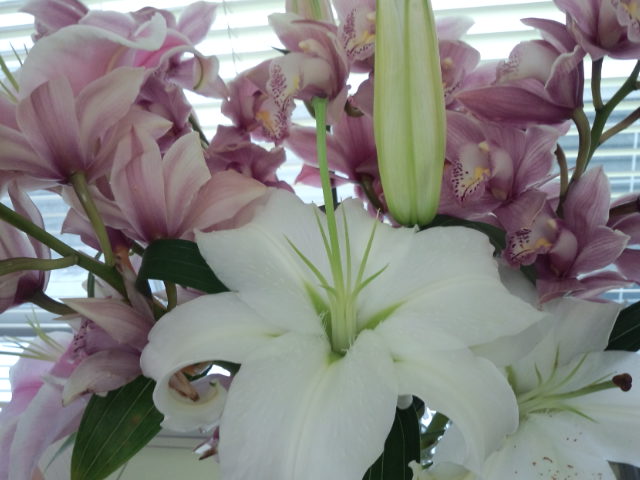 写真はシンビジウムと百合。こんな豪華盛りも涼介さんの隣ならきっと派手すぎないはず。